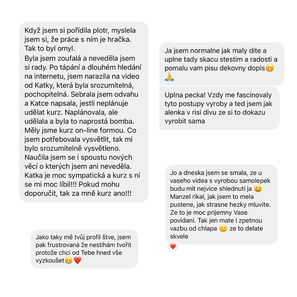 Těžko ti totiž budu popisovat tu úlevu, když jsem přišla na to, co je opravdu ten můj směr. Najednou to všechno do sebe začlo krásně zapadat a já byla namotivovaná na léta dopředu. 🙂 Postupně jsem spojila všechno kreativní, co jsem se naučila, s marketingovým kouzlením a vytvořila svůj barevný plotrový svět, kterého můžeš být součástí.