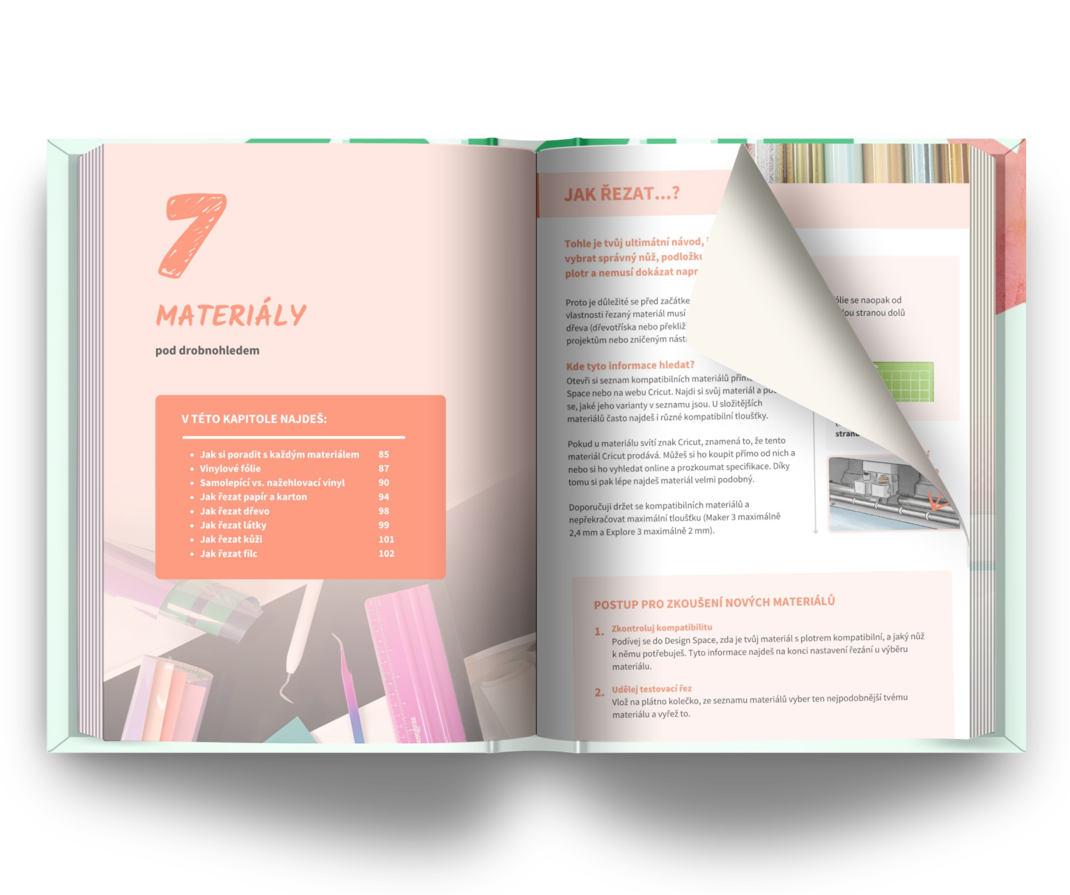 132 stran plných tipů a praktických rad, které ti pomohou ovládnout Cricut a tvořit bez omezení